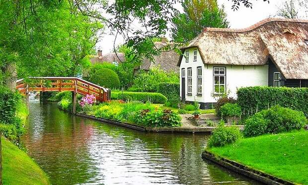 Голландская деревенька Гитхорн, прозванная «Голландской Венецией» – одно из прекраснейших мест на планете. Её общая протяженность – около 7 км, но здесь есть всё, что нужно для души – тишина, спокойствие, уют и прекрасная природа.