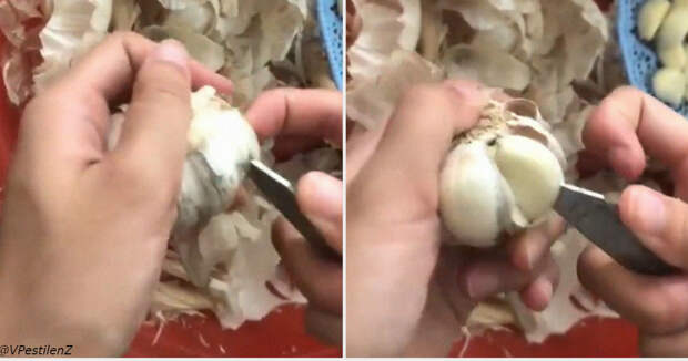 Нож аккуратно вставляется в луковицу, и достаточно одного поворота, чтобы отделить зубок от его кожи. «Как человек, который делает много корейской еды, я утверждаю - это лучший метод для очистки чеснока!» - написала она в подписи под видео.